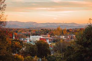 The Greeneville "skyline" nestled in and amongst the mountains during a fall sunset.